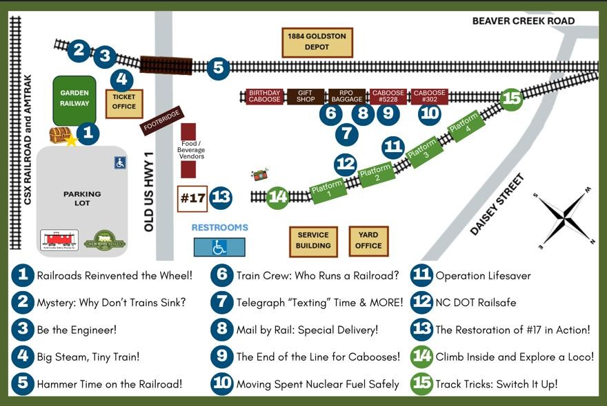 We need your help to make this day a success! In addition to all the usual ride day roles (parking, Garden Railroad, Gift Shop, Train Crew, etc.), we need volunteers to staff our exhibits. Fortunately, we’ll have Honor Students from Green Level High School assisting, but we still need our members to pitch in. The best part? All exhibits are ready to go, and the roles we need help with require no special knowledge.