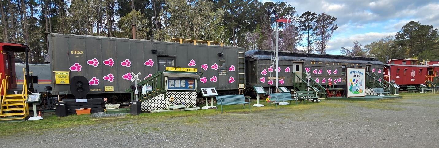 The pollen is definitely out, so it must be spring around the railway museum. While the pollen can be annoying, it did not stop volunteers from cleaning the yellow stuff off of the seats and getting the train ready for Hop into Spring, our first major event last weekend. Thanks to some social media assistance from Juli Buker and great weather, we had an excellent turnout with over 900 visitors for the two days. Tom the Easter Bunny had a workout waving to all of the children. It was a successful, safe event and everything ran smoothly. A big thank you to the volunteers who helped make it happen, especially the last-minute decorating crew. A couple of guests took the time to send us their pictures. Great publicity for NCRM!